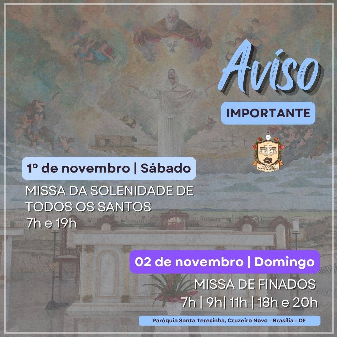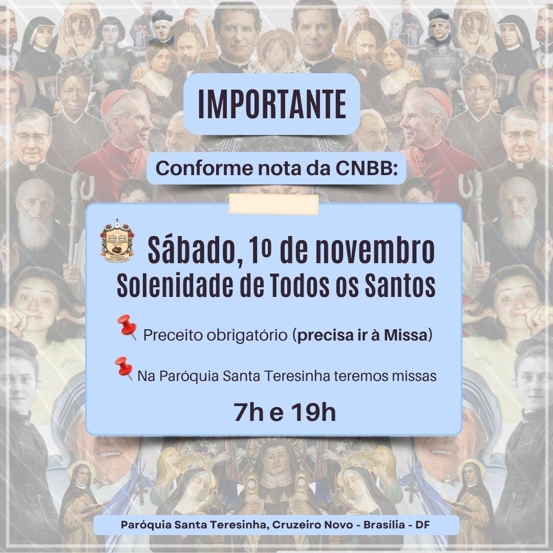 No próximo sábado, dia 1º de novembro teremos na Paróquia Santa Teresinha a celebração de TODOS OS SANTOS, às 7h e 19h.