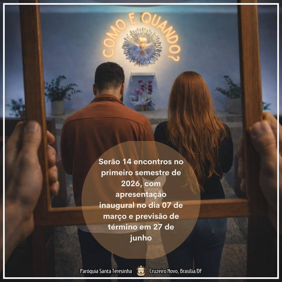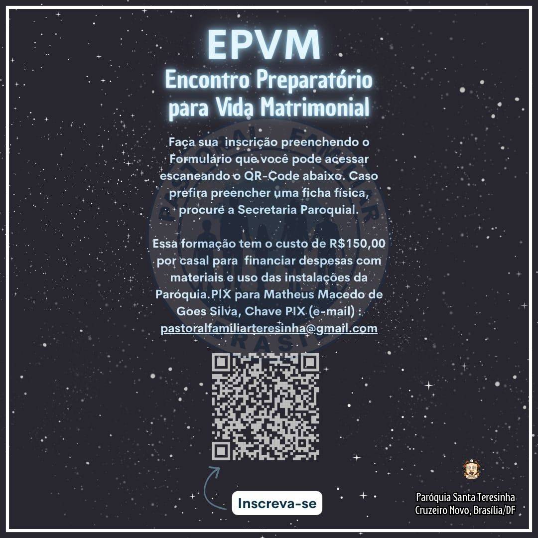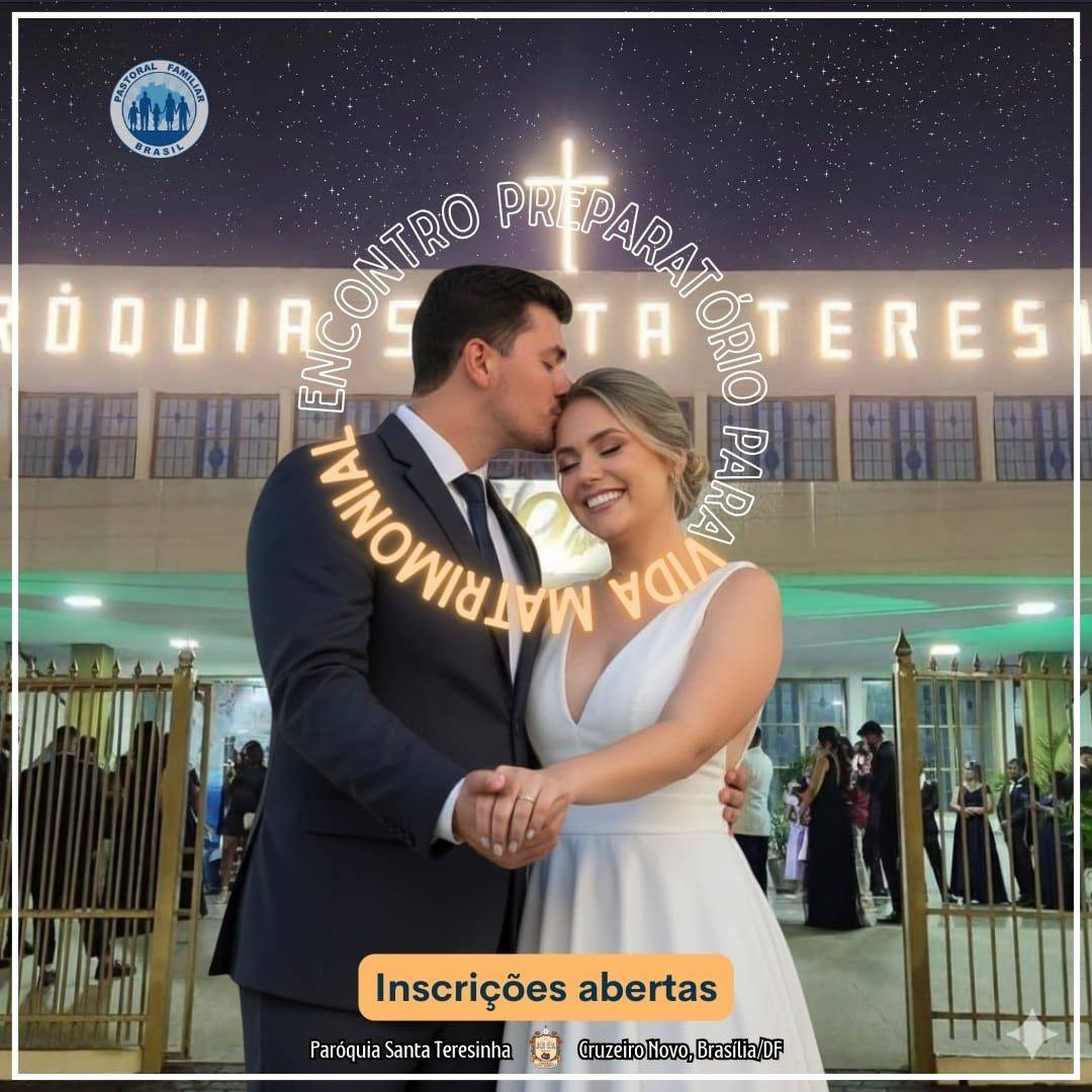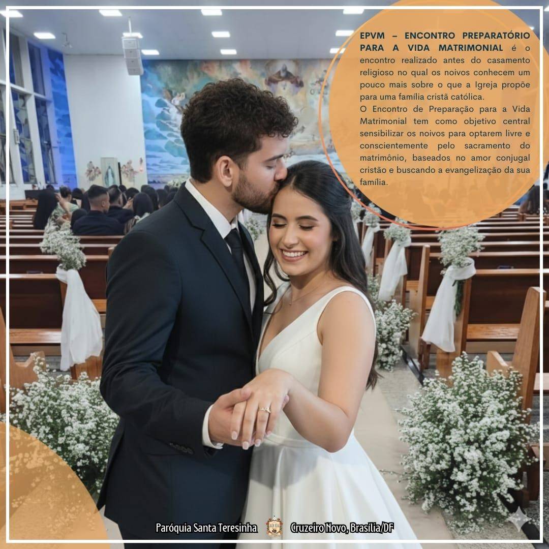 A Pastoral Familiar informa que estão abertas as inscrições para o ENCONTRO PREPARATÓRIO PARA A VIDA MATRIMONIAL (EPVM) até o dia 01/03/2026.