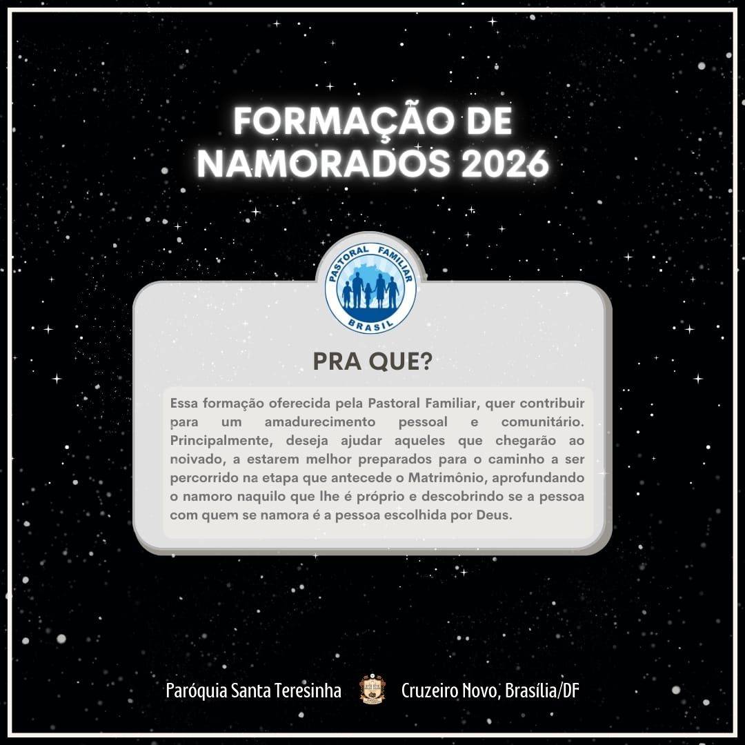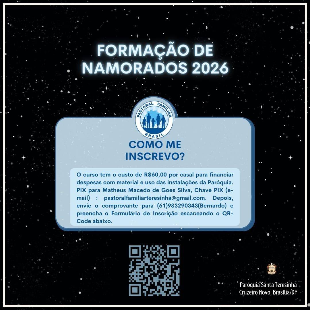 A Pastoral Familiar informa que estão abertas as inscrições para os encontros de Formação para Namorados.