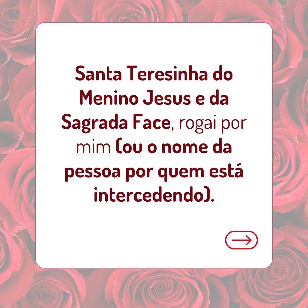 Santa Teresinha do Menino Jesus e da Sagrada Face, rogai por mim (ou o nome da pessoa por quem está intercedendo).
