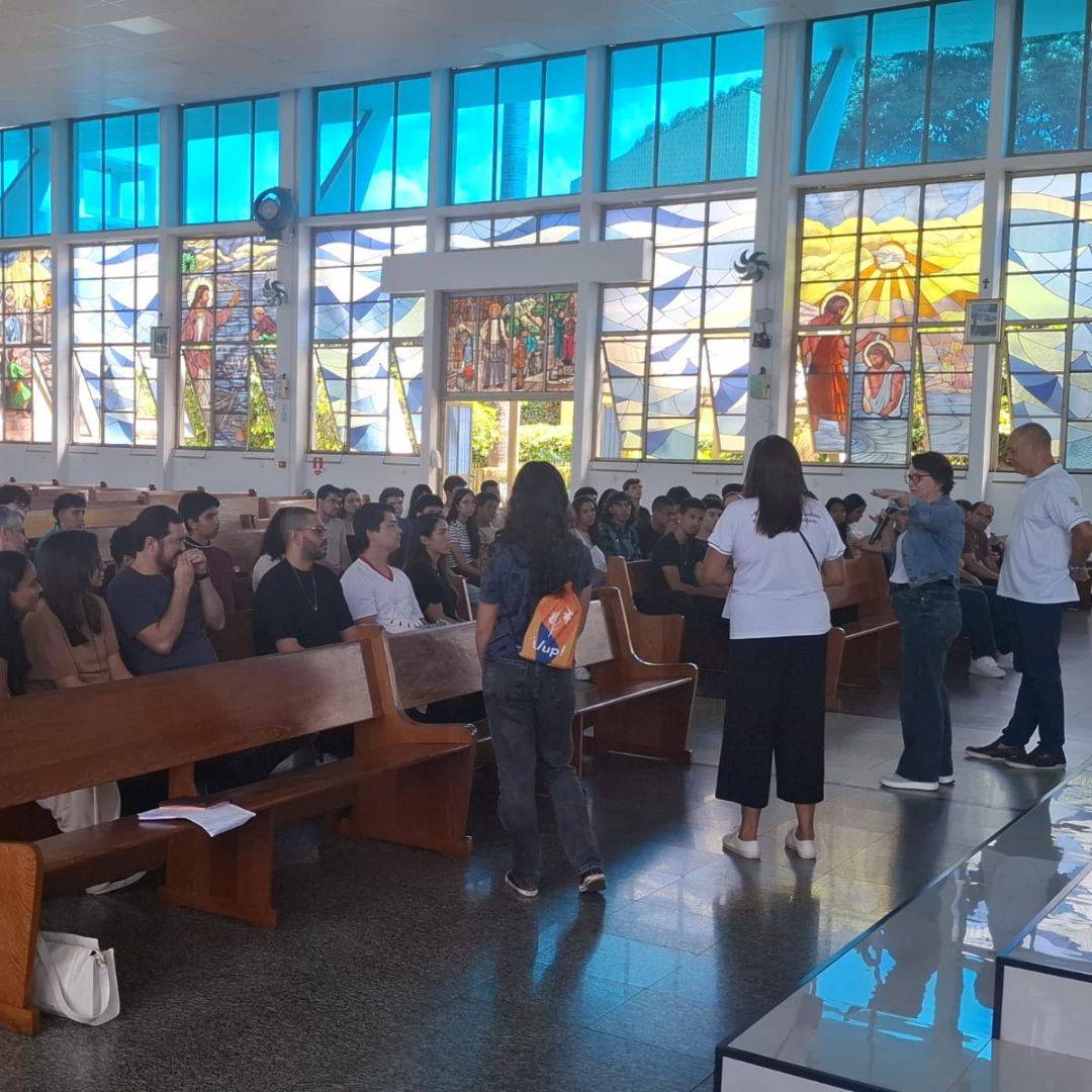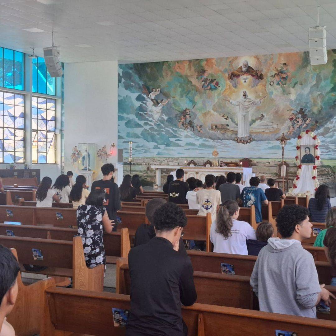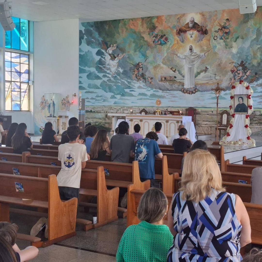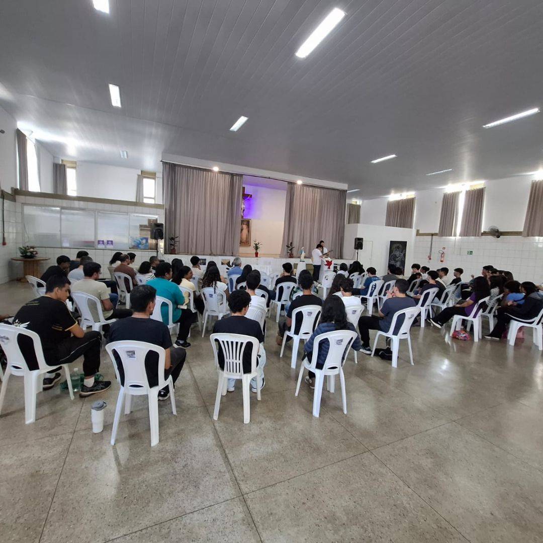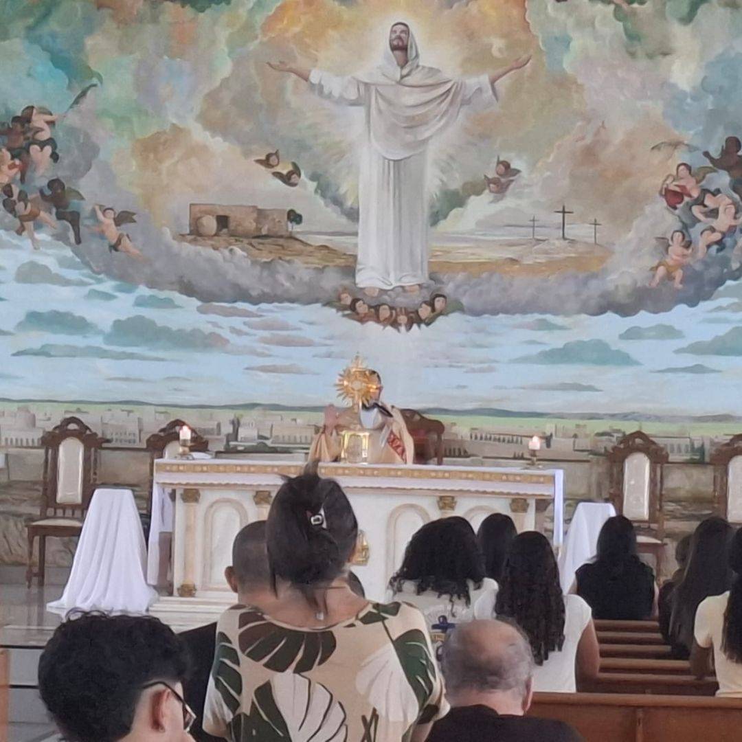 O encontro foi marcado pela convivência com os catequistas e pela presença do Pe. Eli Marcel, que acompanhou o grupo em conversas e no momento central de Adoração ao Santíssimo Sacramento.