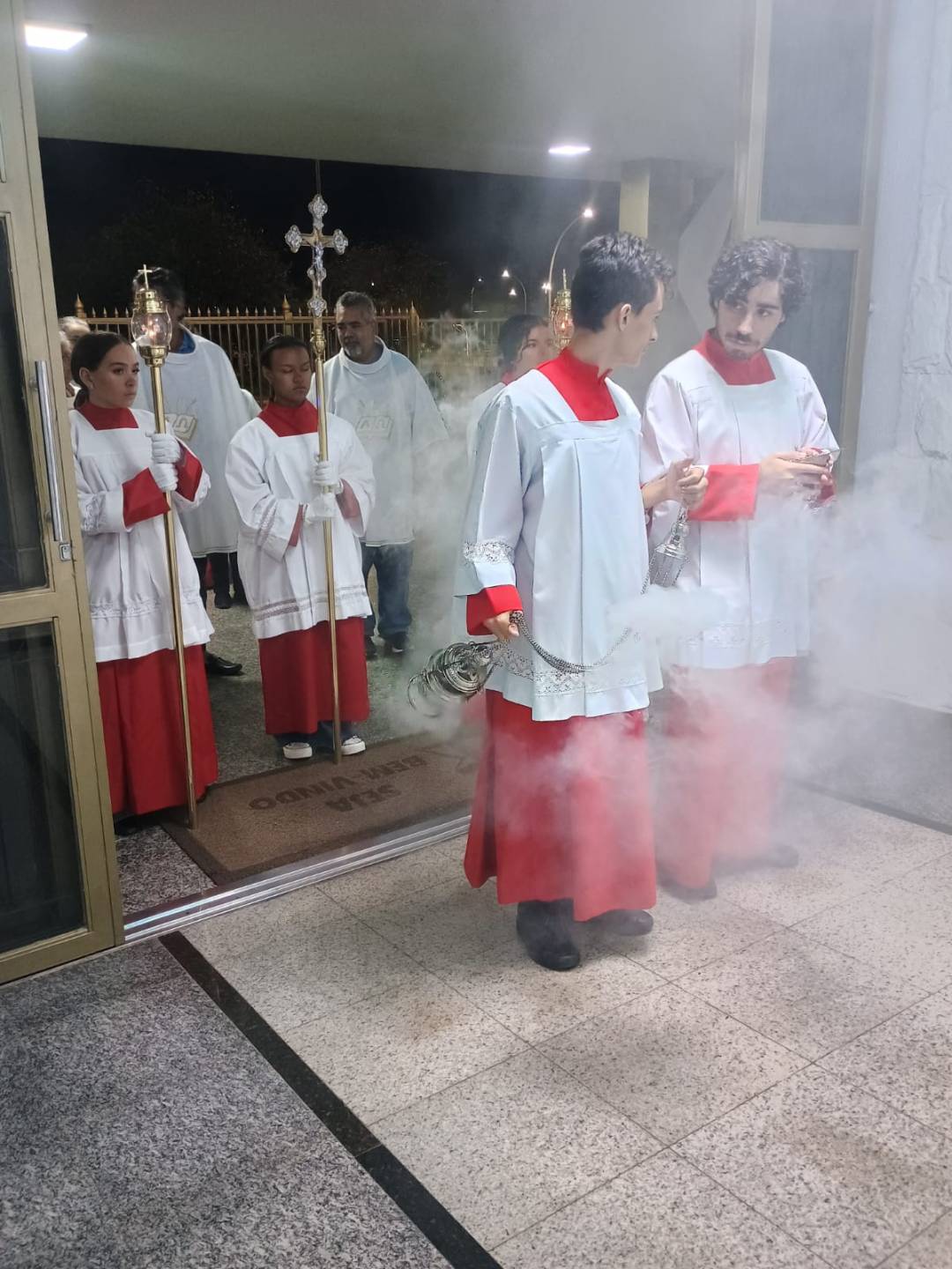 A celebração foi presidida pelo Pe. Valdemar Alves Pereira e concelebrada por Dom Protógenes José Luft, reunindo com fervor os Guanellianos Cooperadores e Aspirantes e o Terço dos Homens, além de toda a comunidade paroquial. 🤝